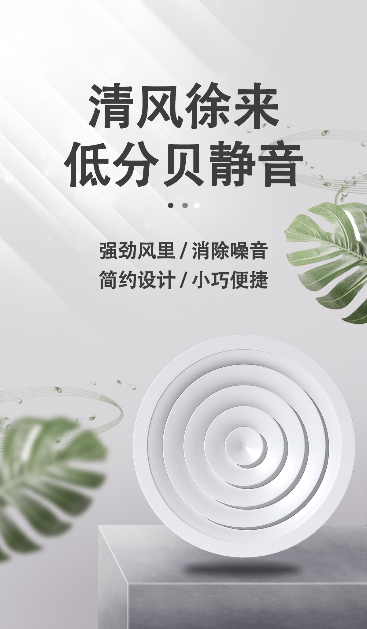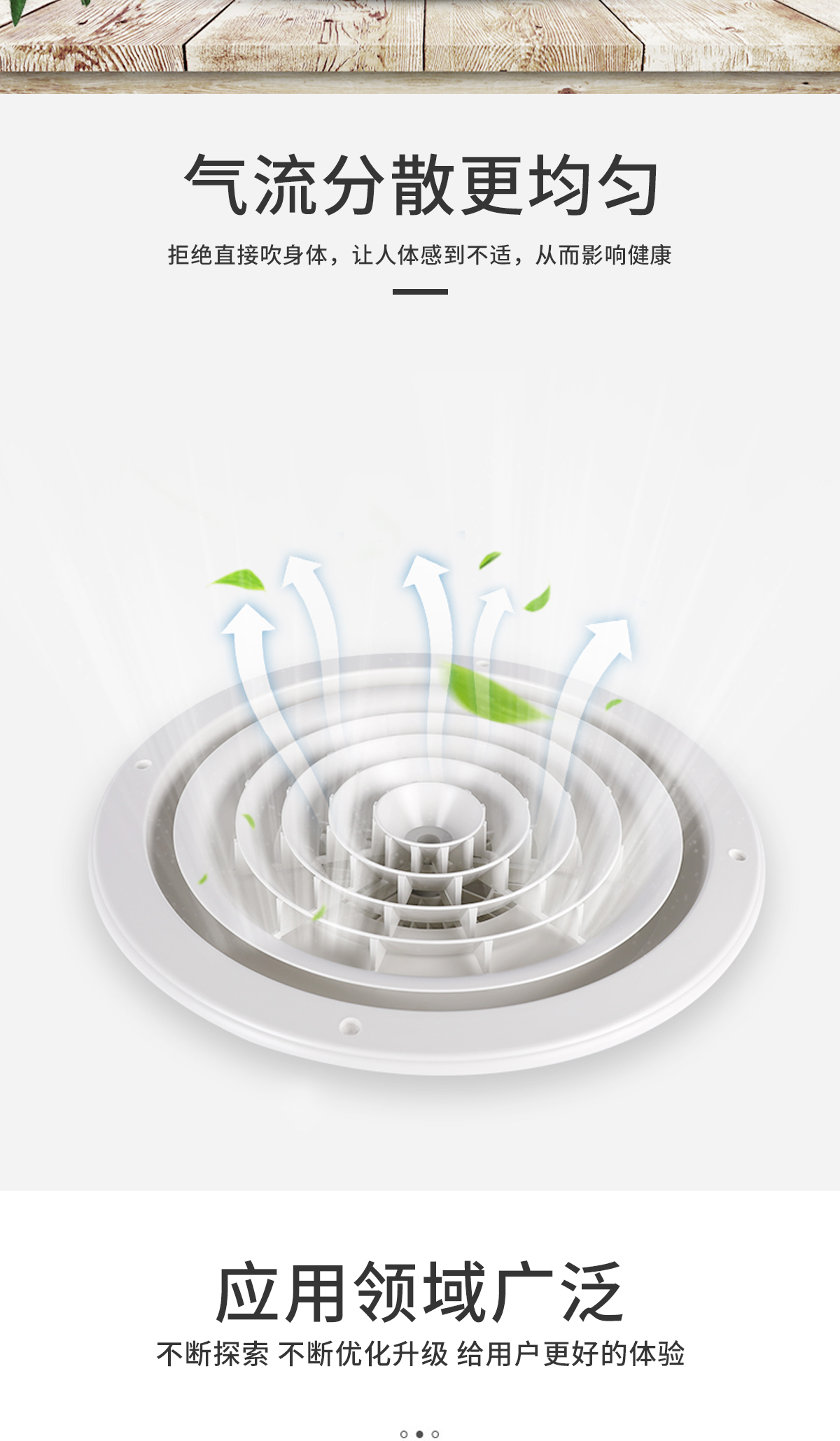 用于冷暖送風,常安裝在頂棚上 吹出氣流呈貼附(平送)型 可以供給較大的風量 在給定風量范圍內擴散半徑可大小變化 可與圓形對開調節閥配套使用